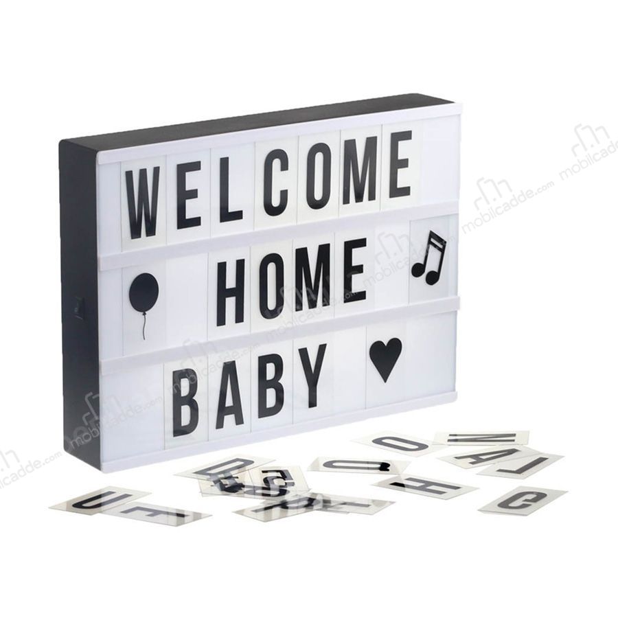 Kapıda ödeme <p>A6 kağıt 148*105 cm boyutunda 94 adet çıkartılabilen harf içeren Led tasarruflu ışık panosu lightbox.<br></p><p>Ma tsiyah dış çerçevesi ve parlak Led ışığı, sinematografik bir tasarımla her mesajınızı dikkat çekici hale getirir.<br></p><p>Parlak Led ışık teknolojisi kullanılmıştır. Ev ve iş yeri için hem karanlık hem de aydınlık odalarda harika görünür.<br></p><p>İlham verici teklifler yazmak veya aileniz arasında mesajlar göndermek için mükemmeldir.<br></p><p>Doğum günü, evlilik yıl dönümü, düğün, anneler günü, babalar günü, yılbaşı,sevgililer günü için ideal hediyedir. <br></p><p>Masa üzerinde yer alabileceği gibi duvara monte de edebilirsiniz.<br></p><p> 4 x AApil ile çalışır. Paket içeriğine piller dahil değildir. <br></p><p><br></p><p><b><u>Paket içeriği;</u></b></p><ul><li>1 adet Led Lightbox ışıklı pano<br></li><li>94 adet harf asetatı<br></li></ul><p><b><u>Teknik Özellikler;</u></b><br></p><ul><li>Voltaj: DC 4×1,5V<br></li></ul><p><b><u>Ebatları;</u></b><br></p><ul><li>15 cm × 10 cm</li></ul>