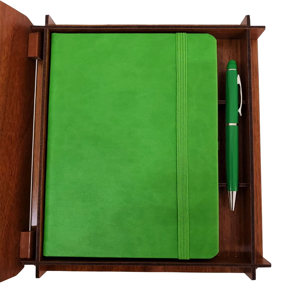 Deri Defter Ve Kalem Setin Özel Ahşap Kutusu Oldukça Şık Bir Görünüme Sahip Olup Defter Kalem Set Özel Bir Hale Geliyor.