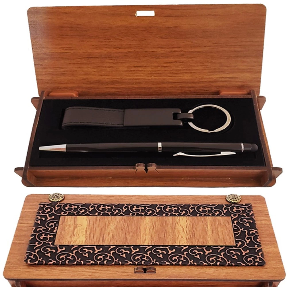 Ahşap Kutulu Siyah Kalem ve Anahtarlık