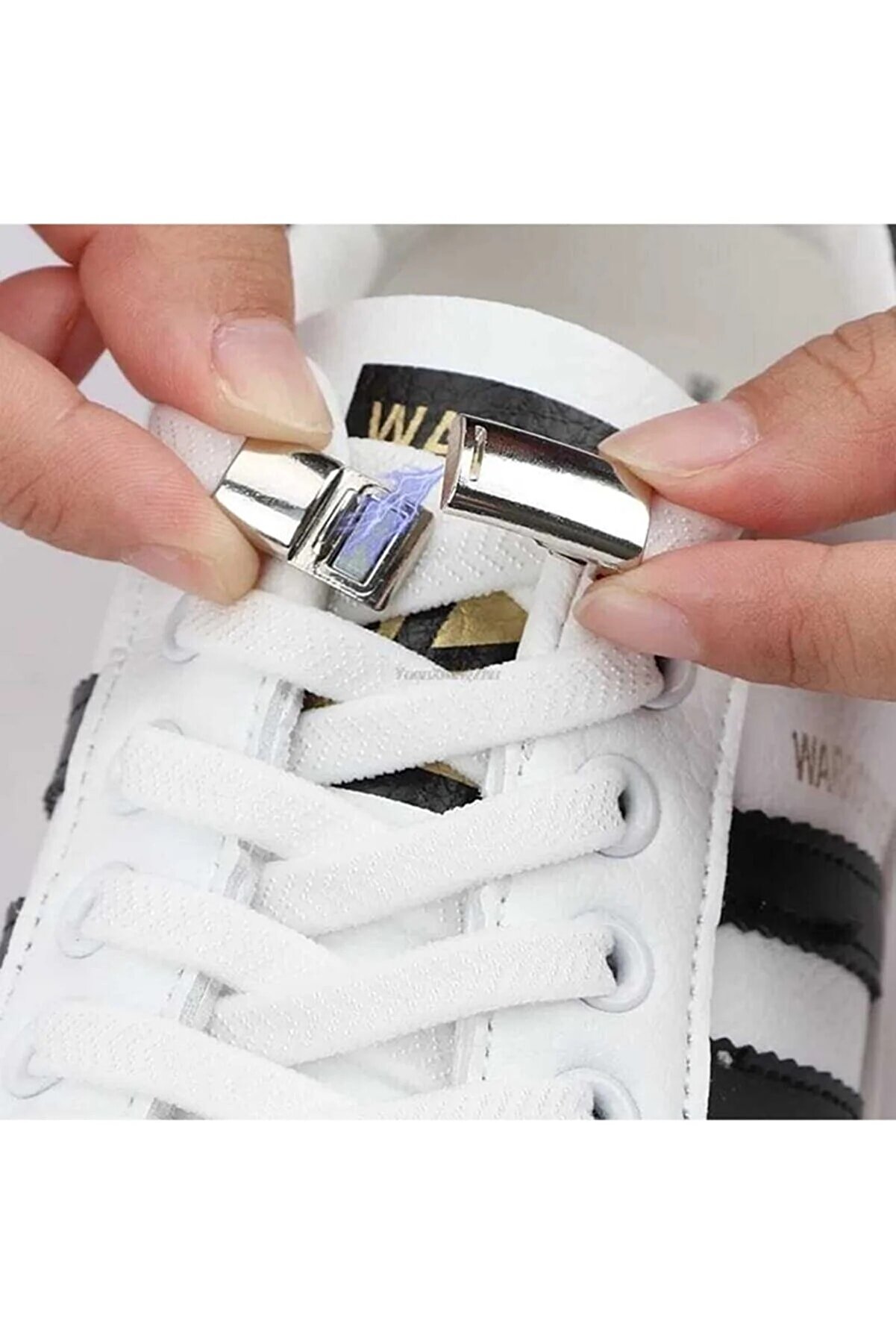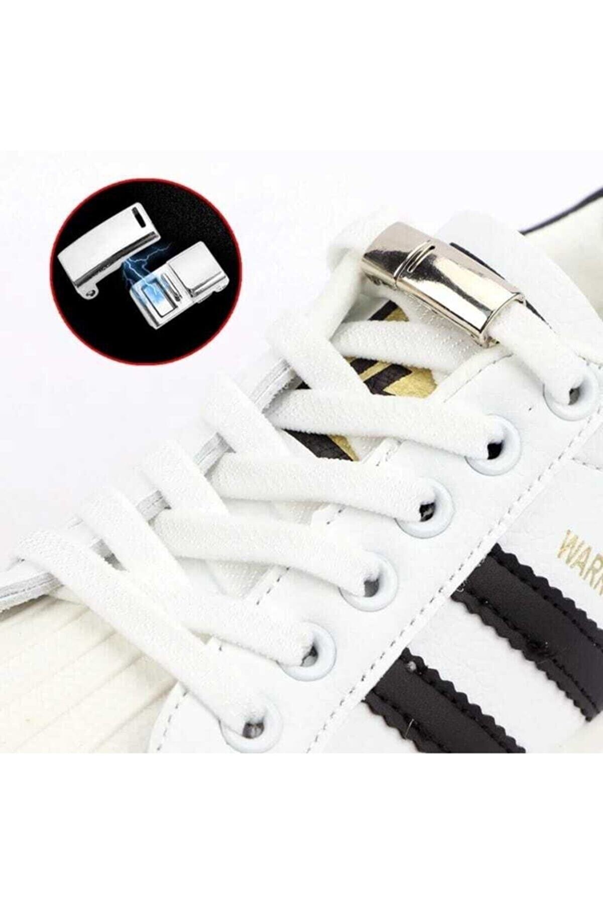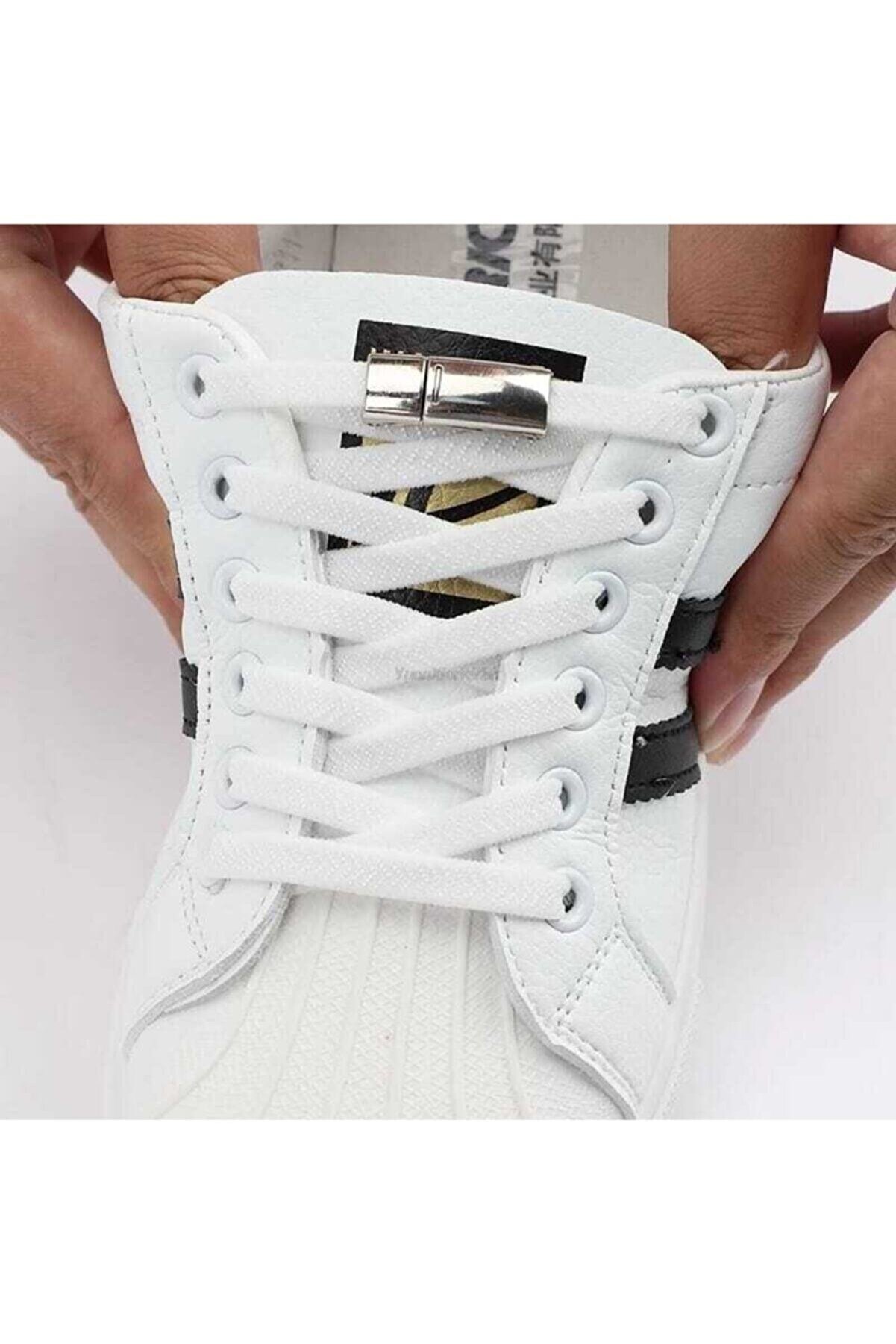 Çocuklar İçin Kolay Kullanımlı Mıknatıslı Ayakkabı Bağcığı Beyaz Renk Kapıda Ödeme