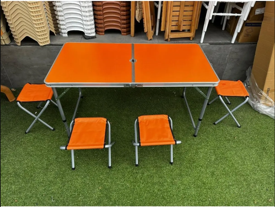 Katlanabilir Alüminyum Kamp Masa 4’lü Tabure Seti