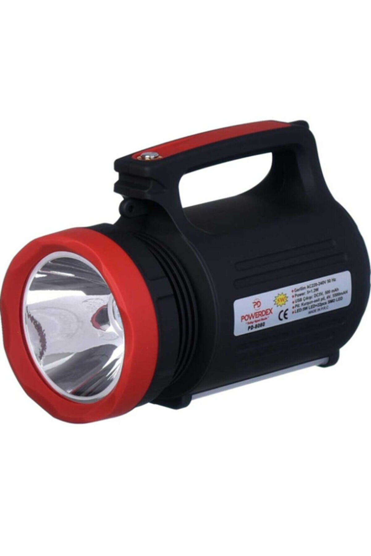 Pd-8080 5 Watt 2000 Metre Mesafeli Powerbanklı Işıldaklı Usb Li Şarjlı Projektör El Feneri Kapıda Ödeme