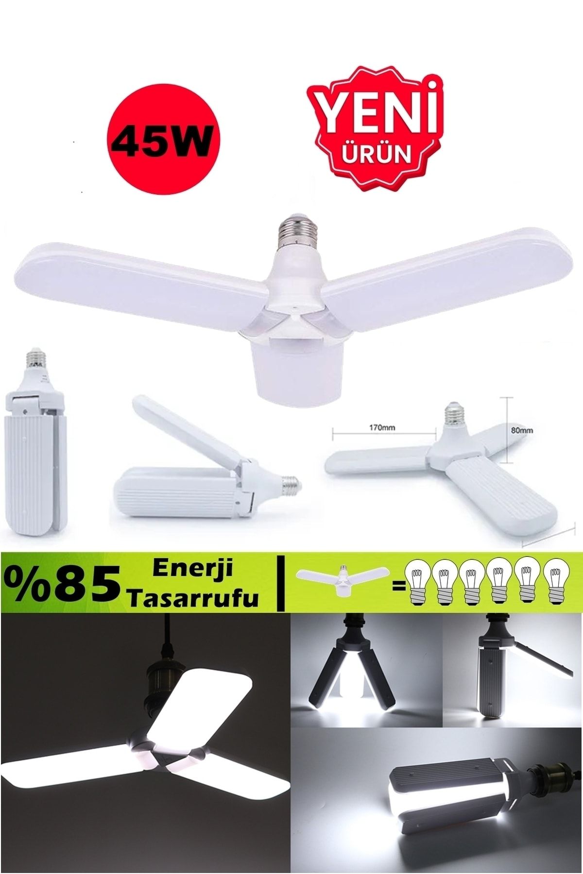 Pervane Ampül 45 W 3 Kollu Katlanır Pervane Led Ampül Tasarruflu Kanatlı Led Kapıda Ödeme