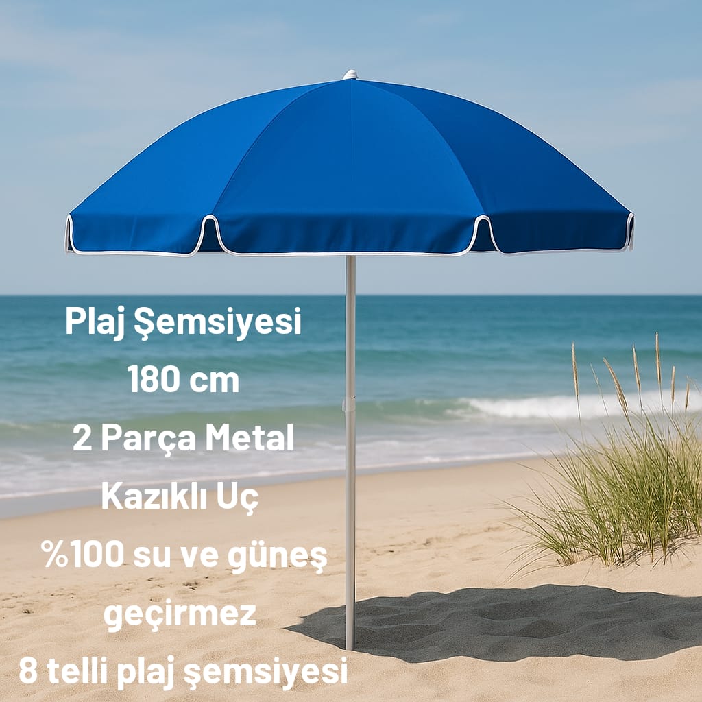 - Plaj Deniz Bahçe Balkon Piknik Kamp Güneş Şemsiyesi Katlanır Mavi Beyaz 170 cm Plaj şemsiyesi