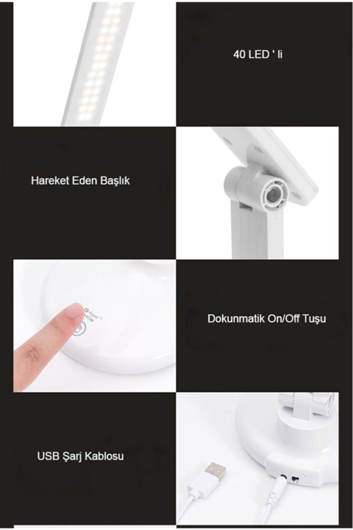 PS-1913 Katlanabilir Şarjlı Dokunmatik 3 Farklı Işık Rengi ve Ayarlanabilir 30 Ledli Masa Lambası Kapıda Ödeme
