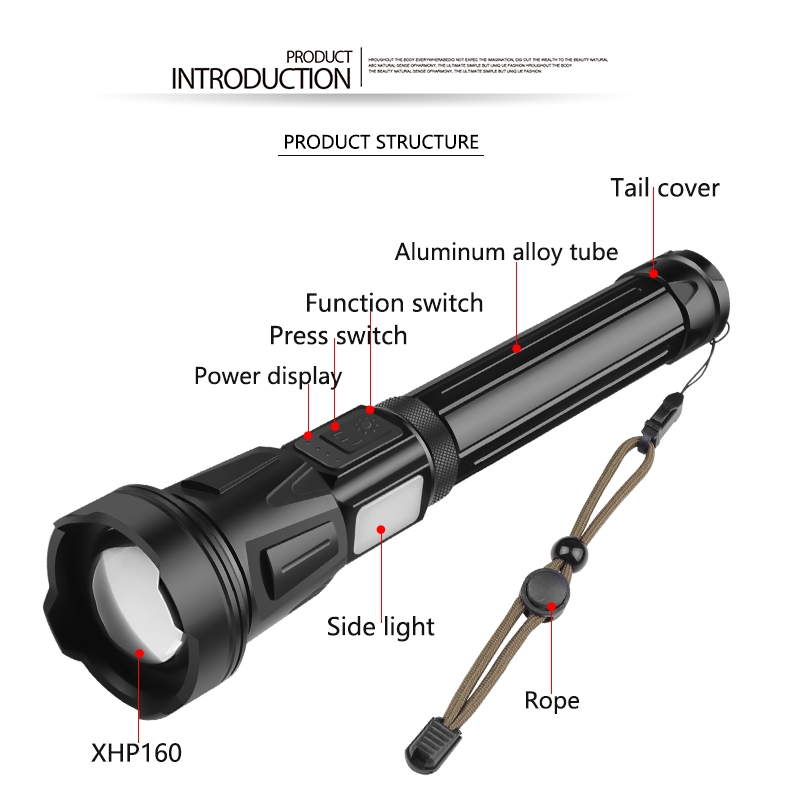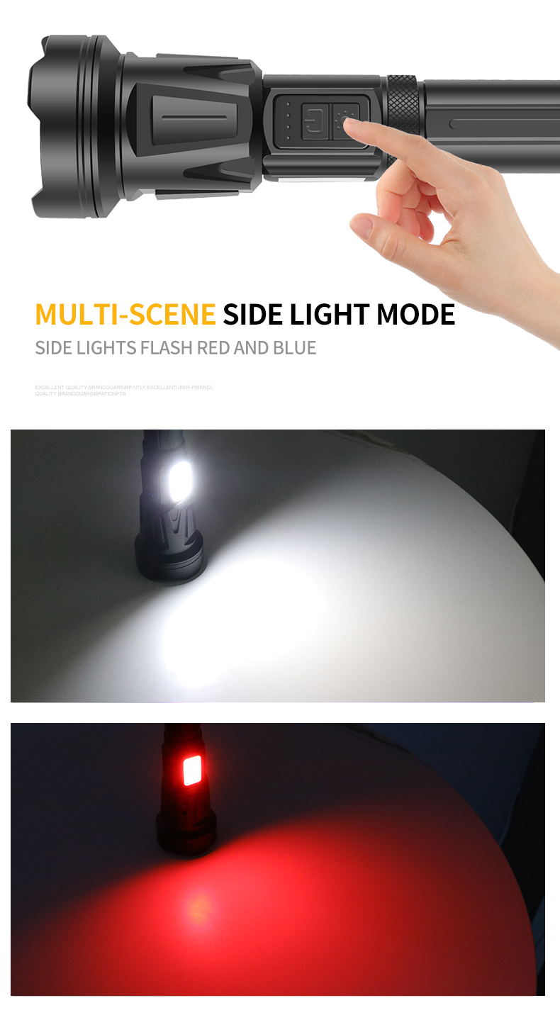 Kapıda ödeme <p>Marka: PeakStar</p><p>Model: 8109</p><p>LED: XHP160+10*LED</p><p>Ölçüleri: 27*6*3.3CM</p><p>Net Ağırlık: 388G</p><p>Malzeme: Alüminyum</p><p>Düğme: İki Düğme</p><p>Batarya: 2*18650/2*26650</p><p>Işık Modu: 3 Mod: Güçlü Işık-Zayıf Işık-Çakar Mod</p><p>Yan COB Işık Modu: 4 Mod: Beyaz Güçlü Işık- Beyaz Zayıf Işık- Kırmızı Güçlü Işık- Kırmızı Flash Modu </p><p>Şarj Yöntemi: Type-C USB Şarj</p><p>Zoom: Telescopic Zoom</p>